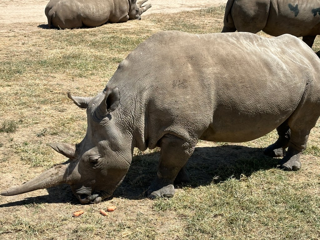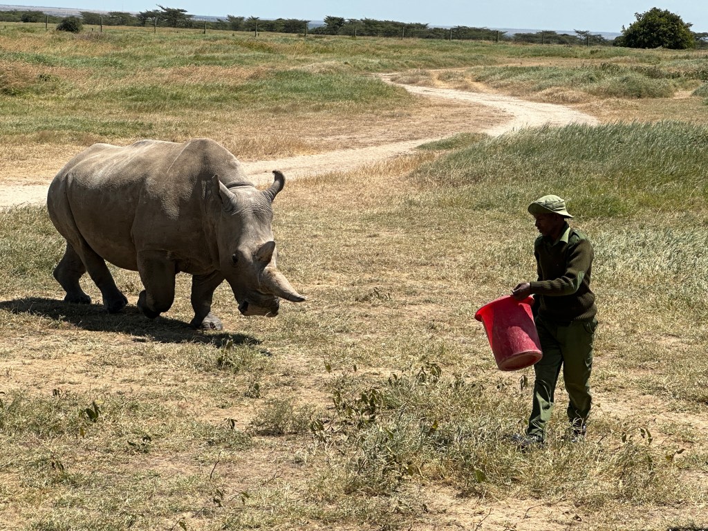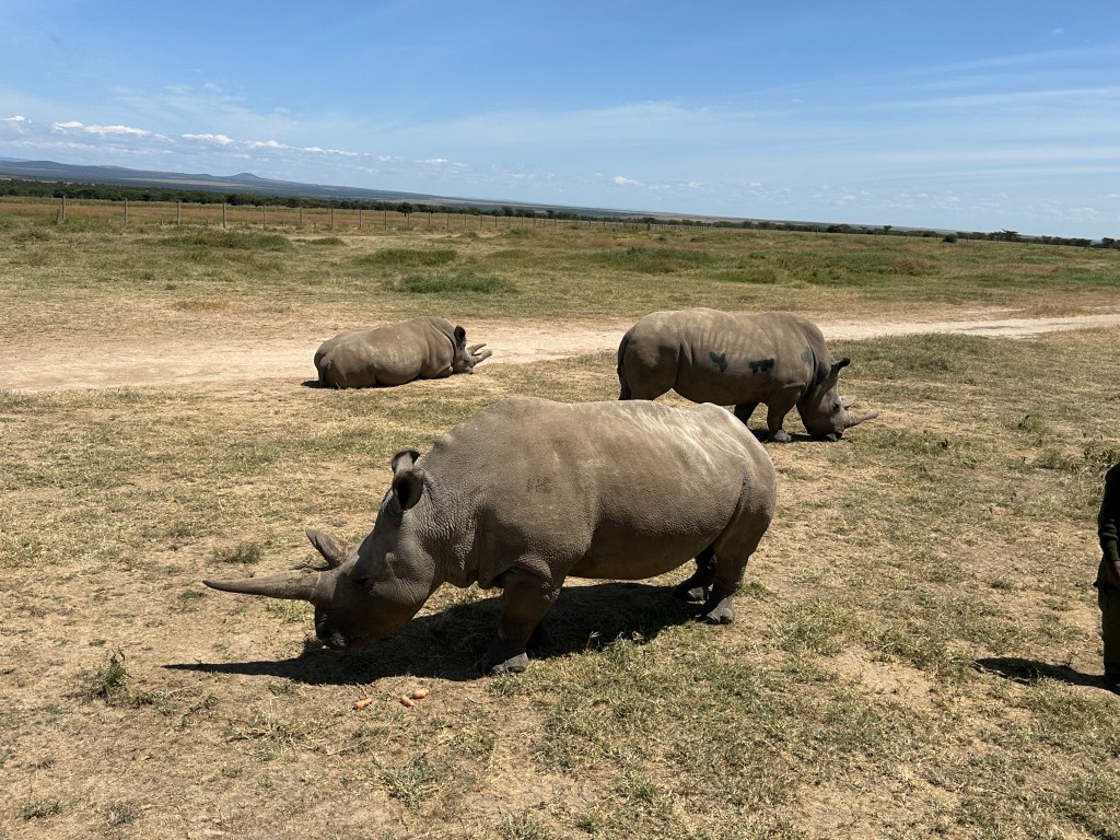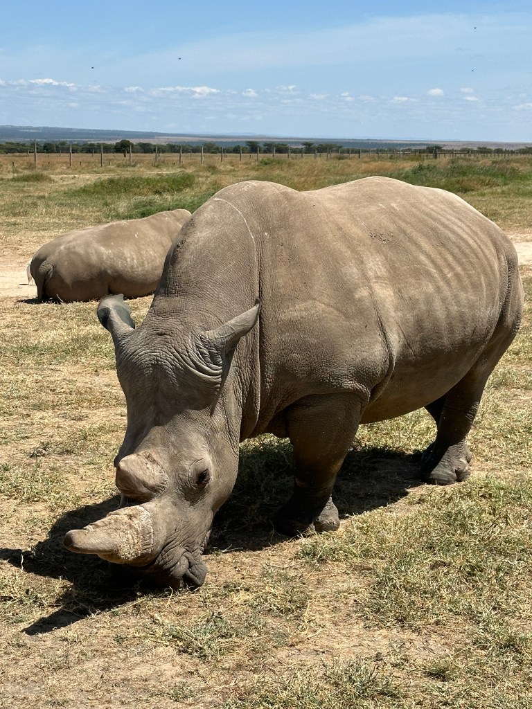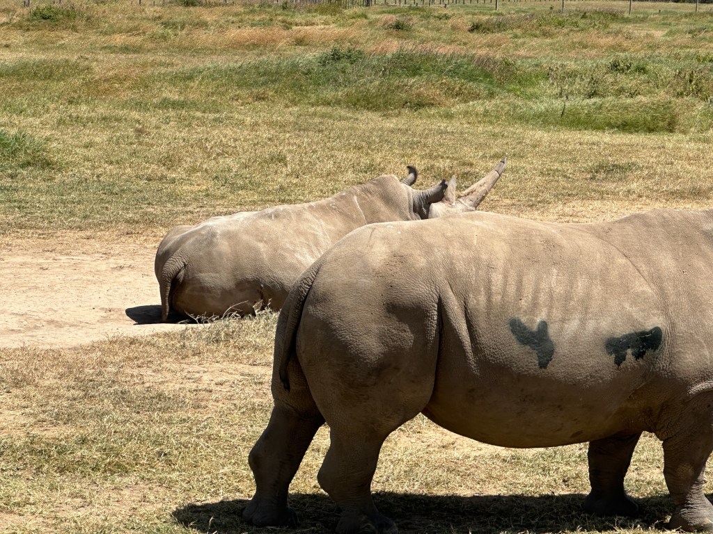The primary fame of Ol Pajeta is the effort to preserve the Northern White Rhino. As recently as the last ten years there were four remaining in the entire world. Two that were in zoos in San Diego and the Czech Republic died recently and the last two, Najin and Fatu, are here, cared for and guarded 24 hours a day in a separate habitat. They are both females and neither can reproduce, so they are truly the LAST two. The last male Northern White Rhino died recently.