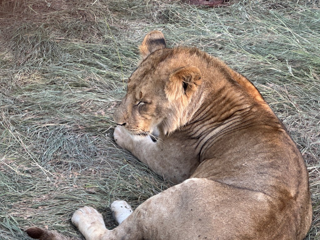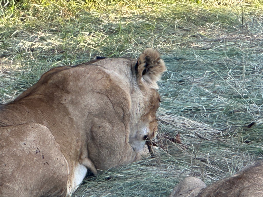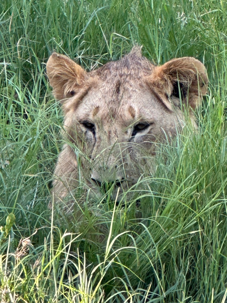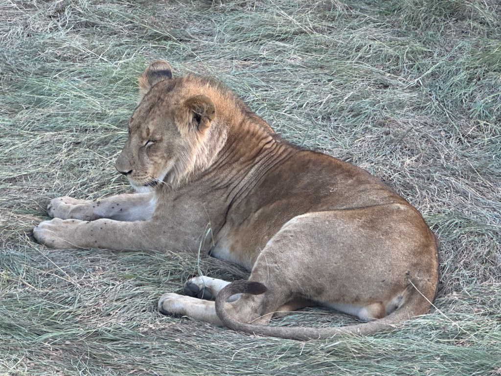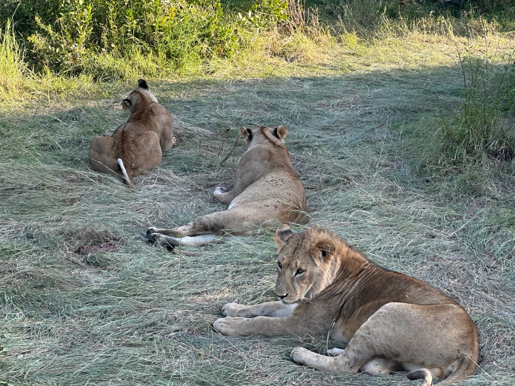 This was followed closely by our guide spotting two beautiful lions, one female and one young male, hunkered down in the bushes.
