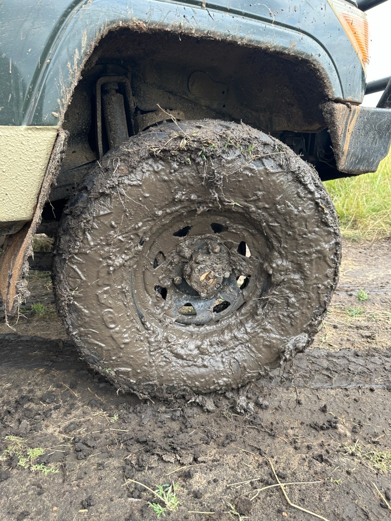 The park is so vast that we only saw elephants from a distance today and no giraffe. To add some additional personal adventure. We also got stuck and had to be pulled out by one of the other drivers (apparently this is very common, especially in the Mara where the mud gets really thick). Fortunately, there were no animals around. At one point we tried to push and I got a good load of Maasai Mara mud on my shoe! And then 5 minutes from the entrance on our way out, we had a tire blow out. This seemed even more common today as we passed another vehicle earlier changing a tire. We found out later that the guy who had pulled us out, had two flats and wasn’t carrying any spare tires! It took them quite a while to get help!