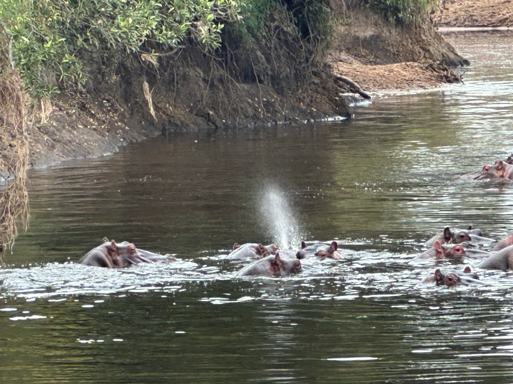 In between we saw some lions (a pair mating and then a group of three sleeping in the bushes), a pair of Secretary birds, a male Maasai Ostrich, a group of Hippos, a Silver-backed jackal, Tapi, Hartebeest, a Black kite, and a Bateleur eagle.